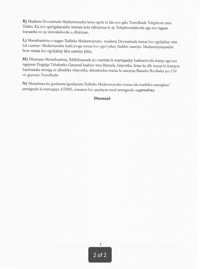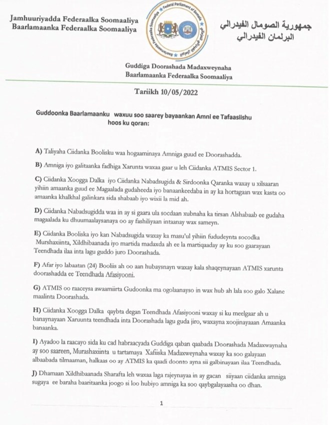 Talaado, May, 10, 2022 (HOL) - Guddoonka barlamaanka Soomaaliya ayaa soo saaray awaamiir lagu xoojinayo amniga goobta ay ka dhacayso doorashada madaxweynaha Soomaaliya iyo sidoo kale ciidamada loo xilsaaray masuuliyadda amniga doorashada.