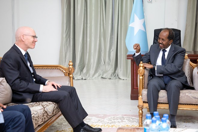 Arbaco, May, 18, 2022 (HOL) - Madaxweynaha dowladda Soomaaliya Xasan Sheekh Maxamuud ayaa Maanta magaalada Muqdisho kulan la qaatay Wakiilka gaarka ah ee Qaramada Midoobay ee Soomaaliya James Swan.