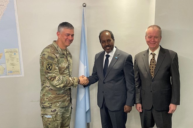 Axad, May, 22, 2022 (HOL) - Taliyaha Ciidamada Mareykanka ee Afrika (AFRICOM) General Stephen Townsend ayaa kulan la qaatay Madaxweynaha cusub ee Soomaaliya.