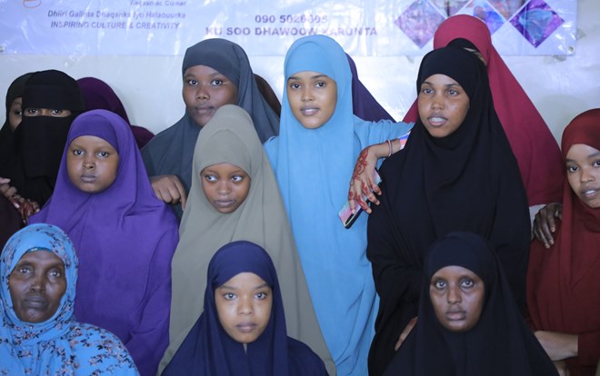 Arbaco, May, 25, 2022 (HOL) - Xarunta dhaqanka, cilmi baarista iyo akhriska ee Aw-Jaamac Cumar Ciise, ayaa maanta magaalada Muqdisho kusoo gabo-gabeysay tababar socday muddo shan bilood oo in ka badan 80 dhallinyaro ah lagu barayay noocyada kala duwan ee farshaxanka.