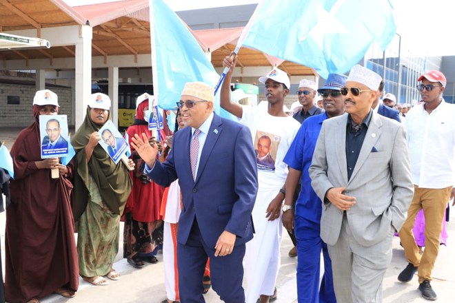 Arbaco, May, 4, 2022 (HOL) - Dr Abuukar Aaden Cabdulle Cusmaan (Aadan Cadde) oo u taagan xilka madaxweynaha Soomaaliya ayaa lagusoo dhoweeyay magaalada Muqdisho, isagoo doonaya inuu ka qeyb galo doorashada madaxweynaha Soomaaliya.