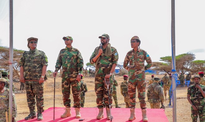 Isniin, November, 28, 2022 (HOL) - Madaxweynaha Jubbaland, Wasiirka Difaaca Soomaaliya, iyo taliyaha ciidamada xoogga Sareeye Guuto Odowaa Yusuf Raage, ayaa maanta magaalada Kismaayo uga qeyb galay dhoolotuska ciidamo huwan ah oo loo diyaariyay inay qaadaan howlgal Alshabaab looga xoreynayo deegaannada Jubbaland.