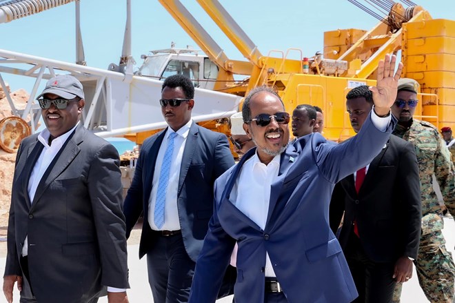 Sabti, October, 22, 2022 (HOL) - Madaxweynaha dowladda Soomaaliya Xasan Sheekh Maxamuud ayaa maanta si rasmi ah xarigga uga jaray dhismaha dekedda Garacad ee gobolka Mudug.