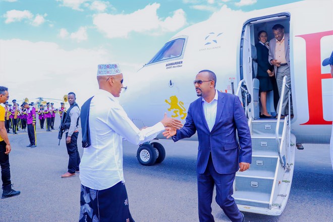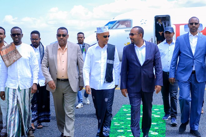 Jimco, October, 7, 2022 (HOL) - Waxaa goor dhawayd magaalada Jigjiga soo gaarey Ra'iisal Wasaaraha Itoobiya Abiyi Axmed Cali iyo wafdi uu hoggaaminayo oo ka kooban ku xigeenkiisa ahna Wasiirka Arrimaha Dibadda ee Itoobiya Dhamake Mekonin iyo Ku xigeenka hoggaanka Xisbiga Barwaaqo Aadan Faarax.