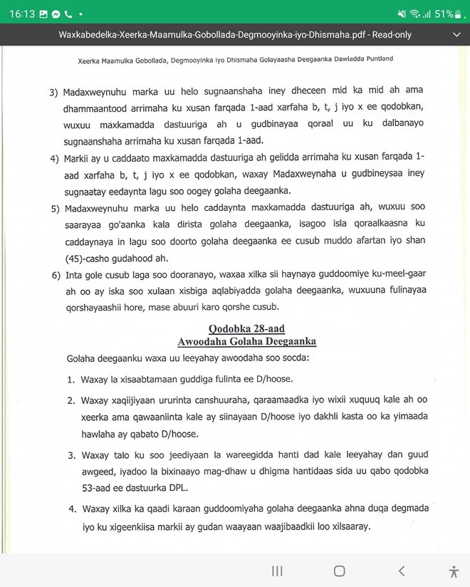 Halkaan hoose ka akhriso xeerka sida uu dhigayo xeerka golaha deegaanka.