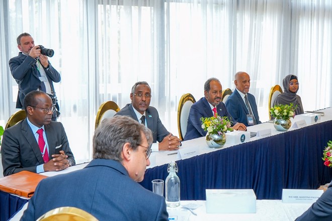Sabti, April, 15, 2023 (HOL) - Madaxweynaha dowladda Fedaraalka Soomaaliya Xasan Sheekh Maxamuud ayaa Maanta magaalada Addis Ababa ee xarunta dalka Itoobiya uga qeybgalay shirka saddex geesoodka ah ee dalalka Soomaaliya, Talyaaniga iyo Itoobiya.
