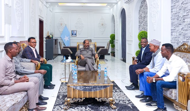 Sabti, Agoosto, 26, 2023 (HOL) - Madaxweynaha dowladda Fedaraalka Soomaaliya Xasan Sheekh Maxamuud ayaa Xalay kulan kula qaatay magaalada Dhuusamareeb ee Caasimadda maamulka Galmudug, qaar ka mid ah siyaasiyiinta iyo shacabka Galmudug.
