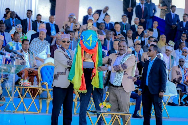 newsinsideMunaasabaddan oo lagu qabtay garoonka kubadda cagta ee Jigjiga ayaa waxaa ka soo qayb galay Masuuliyiinta u sarreysa dowladda Itoobiya oo ay u horreyso Madaxweynaha Itoobiya Zahlewarqi Zowde, Madaxda Dowlad goboleedyada Itoobiya iyo kooxaha hidaha iyo dhaqanka ee degaannada dalka Itoobiya oo iyagu halkaa kusoo bandhigayay dhaqanadooda kala duwan iyo waxa uu degaan kasta uu gaar uleeyahay.
