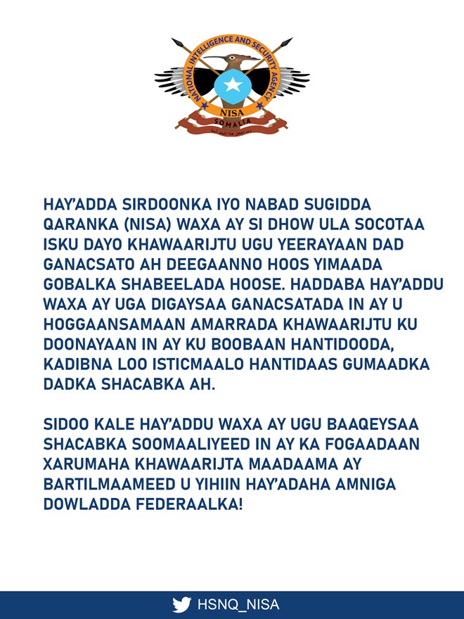 Hoos ka Akhriso Qoraalka kasoo baxay Hay'adda NISA:-