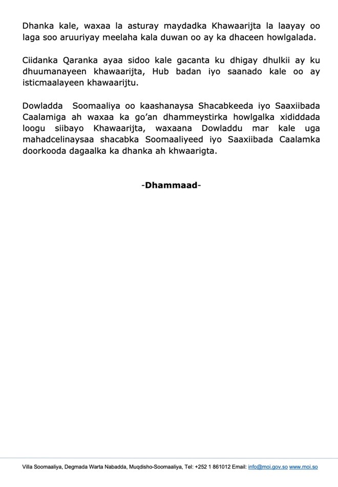 Howlgalkan ayaa waxaa taageerayay saaxiibada caalamiga ah ee amniga Soomaaliya, sida lagu sheegay war ka soo baxay dowladda.
