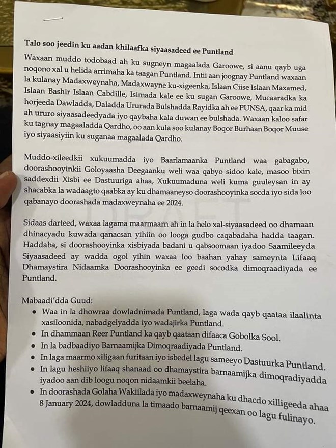 newsinsideTalo soo jeedintooda waxay ku sheegeen in aan xilligan jirin sabab loo furo dastuurka Puntland. Waxay kaloo sheegeen in ay muhiim tahay in ilaaliyo doorashada madaxweynaha Puntland oo ay ku dhacdo waqtigeedii 8 January 2024.