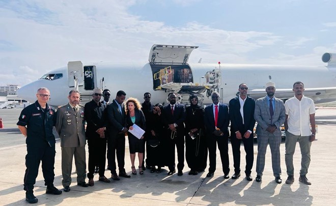 "Waxaan Maanta la wareegnay deeq gargaar 20 tan ah oo isugu jirta daawooyin iyo agab kale oo Caafimaad oo nooga yimid Talyaaniga oo kasoo jawaabay waqti munaasab ah codsi aan u dirsanay, waan u mahadcelinaya dowladda Talyaaniga, waxaana rajeyna in codsiyo kale oo inoogu maqan ay kasoo jawaabi doonaan" ayuu yiri Wasiir Isaaq Maxamuud Mursal.