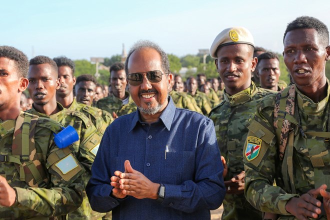 Axad, May, 14, 2023 (HOL) - Madaxweynaha Soomaaliya Xasan Sheekh Maxamuud ayaa saagootiyey Ciidamada Xoogga Dalka gaar ahaan Guutada Gantaal ee Ilaalo Qaran oo ka qeyb-galaya dagaalka dalka lagaga xoreynayo Alshabaab.