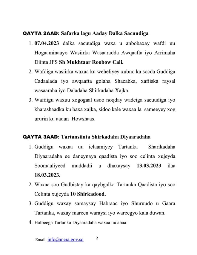 Illaa 75 shirkadood ayaa ku guulaystay daabulka xujeyda, kaddib wasaaraddu u qabatay shirkadaha soo dalbaday.