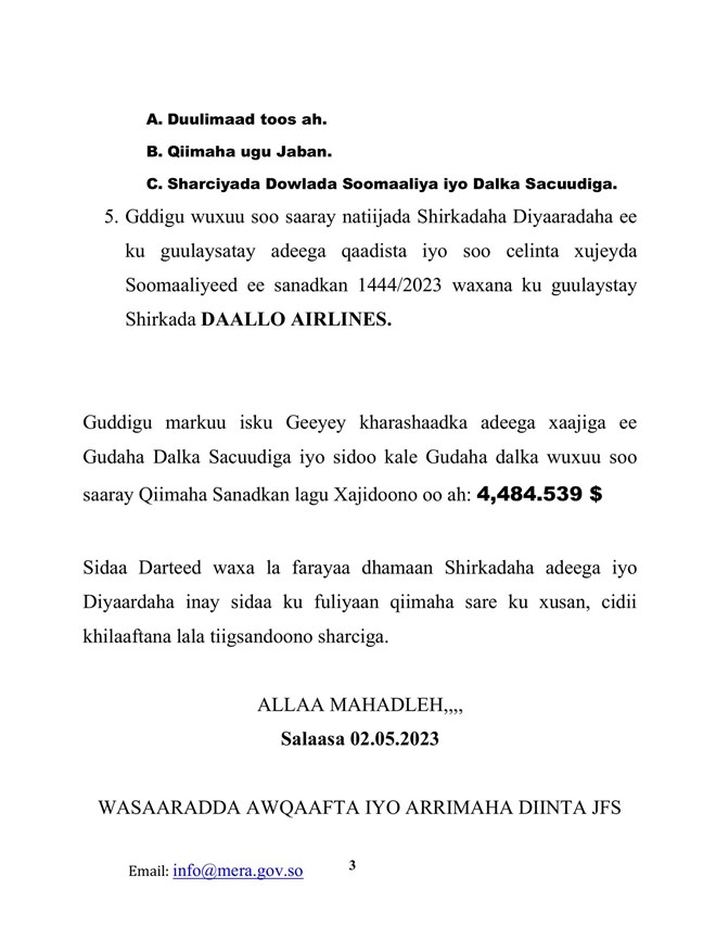 Wasaaradda diinta iyo awqaafta waxay sheegtay in tallaabo laga qaadidoono shirkaddii qarash intaan ka badan ka qaada xujeyda Soomaaliyeed.