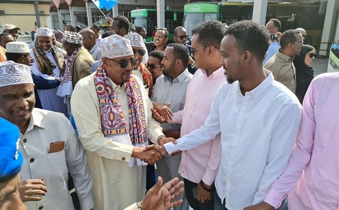Xubnahaan ka tirsan Isimada dhaqanka SSC ayaa waxaa garoonka diyaaradaha Aadan Cadde kusoo dhaweeyay masuuliyiin ka tirsan dowladda Fedaraalka Soomaaliya oo ay ka mid ahayeen Wasiirka arrimaha gudaha Soomaaliya Axmed Macalin Fiqi, gudoomiye ku xigeenka Golaha Aqalka Sare Cabdilahi Timocade, Xildhibaano ka tirsan labada gole iyo qaar ka mid ah qaybaha kala duwan ee bulshada.