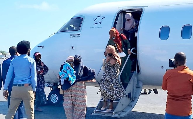newsinsideMasuuliyiin ka tirsan Wasaaradda arrimaha dibadda iyo iskaashiga Caalamiga ah ee Xukuumadda Soomaaliya iyo Xafiiska Madaxweynaha u qaabilsan soo galootiga ayaa magaalada Muqdisho ku soo dhaweeyay 73 qof, halka 64 qof oo kalana ay diyaarada ku dajisay magaalada Garoowe ee xarunta maamulka Puntland.
