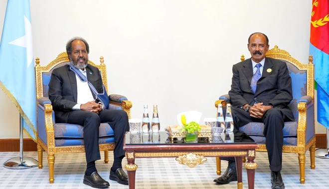 newsinsideMadaxweyne Xasan Sheekh iyo dhigiisa dalka Eretariya Isaias Afwerki ayaa ka wada hadlay xaalada gobolka iyo adkeynta xriirka ka dhaxeeya labada dowladood, waxaana la tilmaamay in labada madaxweyne isla meel dhigeen in si wadajir ah loo wajaho caqabadaha ay wadaagaan labada dal.