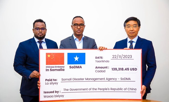 Arbaco, November, 22, 2023 (HOL) - Hay’adda Maareynta Musiibooyinka SODMA, ayaa safaaradda Shiinaha ee Soomaaliya ka gaddoontay deeq lacageed oo dhan $139,318.45, taasoo lagu taageerayo sidii gargaar deg deg ah loo gaarsiin lahaa dadkii ku waxyeeloobay fatahaadda.