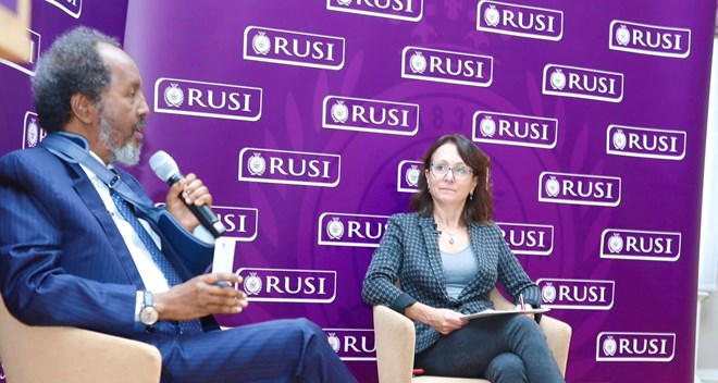 Madaxweyne Xasan Sheekh oo xarunta Cilmi Baarista Amniga RUSI ee magaalada London, kaga qeybgalay kulan uu uga hadlay dagaalka dowladiisa ay kula jirto Al-shabaab ayaa shaaca ka qaaday in dowladda ay dajisay qorsheyaal cusub oo ka dhan ah kooxda.