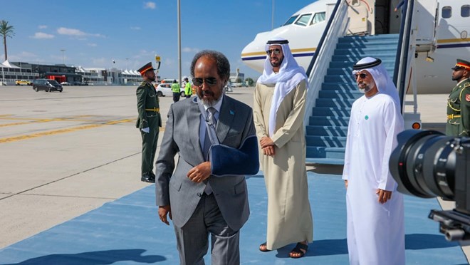 Khamiis, November, 30, 2023 (HOL) - Madaxweynaha dowladda Federaalka Soomaaliya Xasan Sheekh Maxamuud iyo wafdi uu hoggaaminayo ayaa gaaray magaalada Dubai ee dalka Isutagga Imaaraatka Carabta, halkaasoo ay kaga qeyb galayaan Shirka caalamiga ah ee Isbeddelka Cimmilada Adduunka (COP28) oo ka furmaya dalkaas.