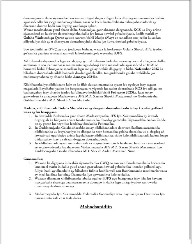War Murtiyeed ay soo saareen Xildhibaanadaan ayaa sidoo kale waxaa loogu baaqay Xildhibaanada labada gole in wax ka qabtaan waxyaabaha Sharci darada ah.