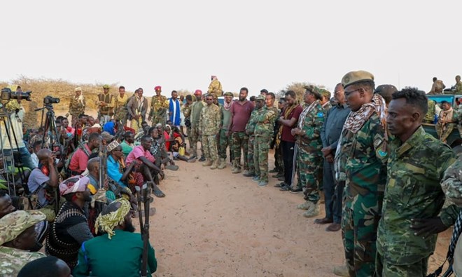 newsinsideMadaxweyne Cali Guudlaawe oo la hadlay boqolaal kamid ah ciidanka Mucaawisleyda degaanka Nuur-Dugle, ayaa wuxuu kula dardaarmay in looga baahan yahay in ay ka qeyb qaataan dagaalka Alshabaab lagula jiro.