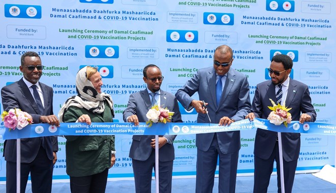 Isniin, September, 11, 2023 (HOL) - Raysal Wasaaraha Xukuumadda Federaalka Soomaaliya Xamse Cabdi Barre ayaa maanta magaalada Muqdisho ka daah furay labo mashruuc Caafimaad oo kala ah Damal Caafimaad iyo Tallaalka COVID-19 oo laga hirgelin doono qaar ka mid ah gobollada dalka.