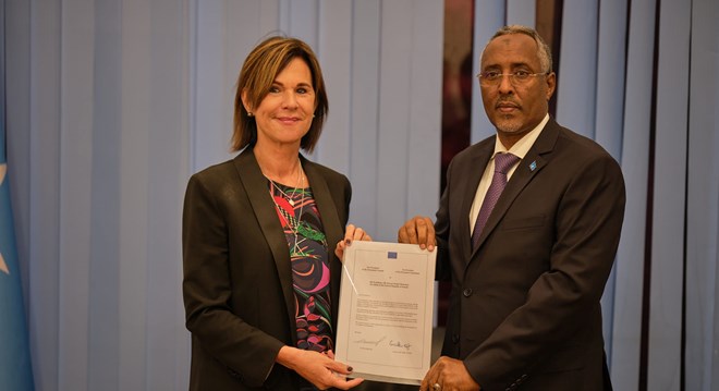 Wasiirka arrimaha dibadda Soomaaliya oo Safiirka cusub ee Midowga Yurub ee Soomaaliya ka guddoomay warqadaha aqoonsiga