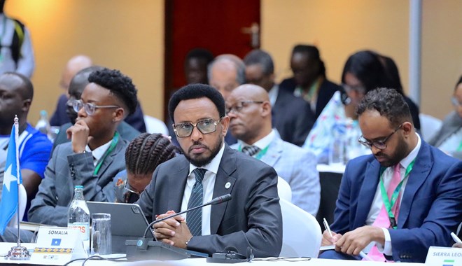 Axad, April, 28, 2024 (HOL) - Wasiirka Wasaaradda Maaliyadda Xukuumadda Fedaraalka Soomaaliya Biixi Imaan Cige ayaa maanta magaalada Nairobi ee dalka Kenya uga qeyb galay shirka 21-aad ee Hay’adda Horumarinta Bangiga Adduunka ee magaceeda loo soo gaabiyo IDA.