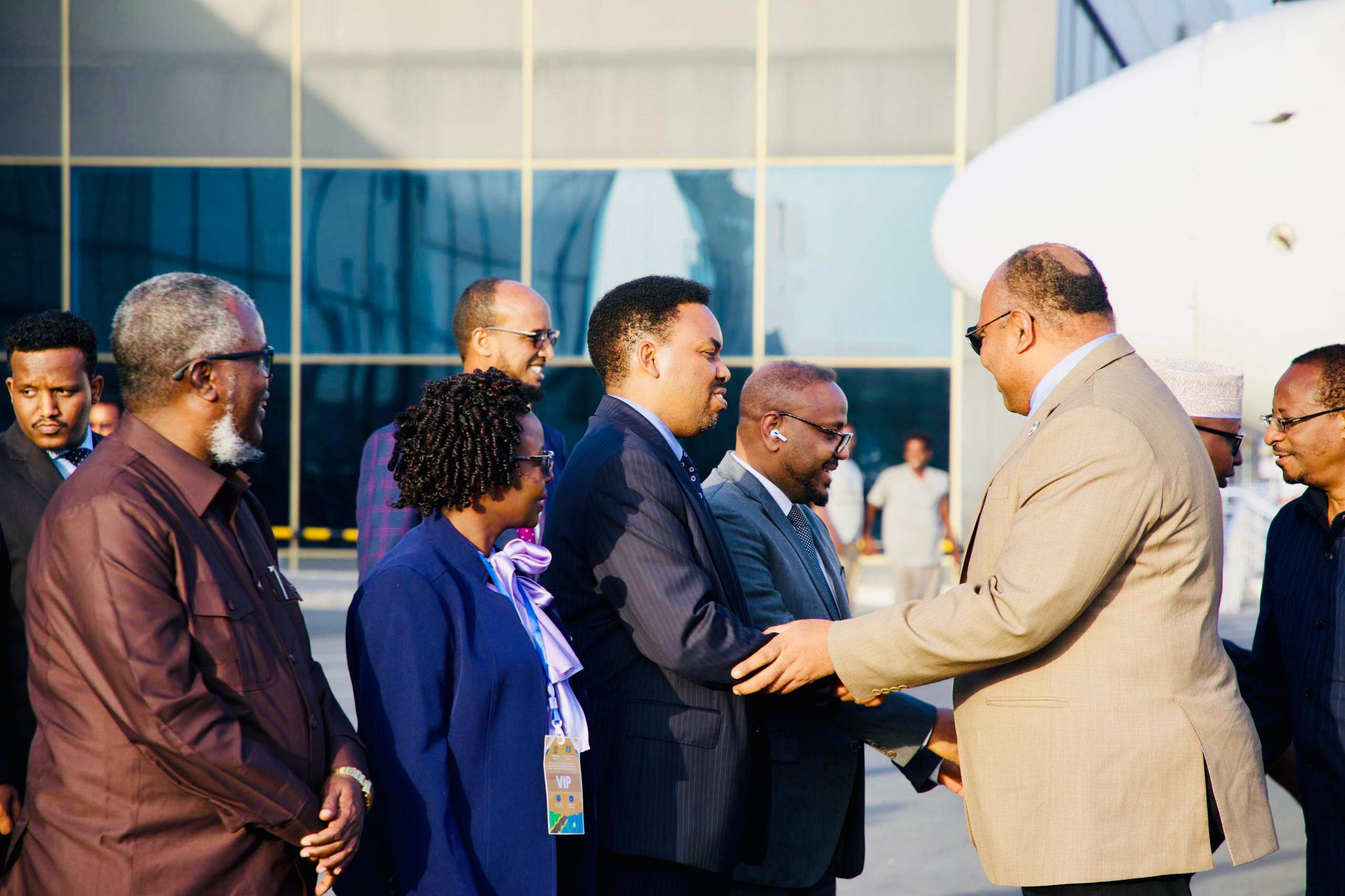 Wasiirka arrimaha dibadda Soomaaliya Axmed Macalim Fiqi oo wafdigaan Garoonka kusoo dhoweeyay ayaa shaaca ka qaaday in booqashadoodi ay xoojin doonto xiriirka labada Dowladood.