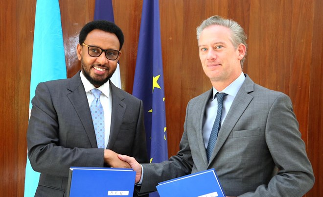 Isniin, December, 2, 2024 (HOL) - Wasiirka Wasaaradda Maaliyadda ee Xukuumadda Soomaaliya Biixi Imaan Cige iyo Safiirka Dowladda Faransiiska ee Kenya iyo Soomaaliya Mr. Arnaud Suquet ayaa ku kala saxiixday safaaradda ay faransiiska ku leedahay magaalada Nairobi heshiis lagu soo afjaray deymihii ay Dowladda France ay ku lahayd Soomaaliya.