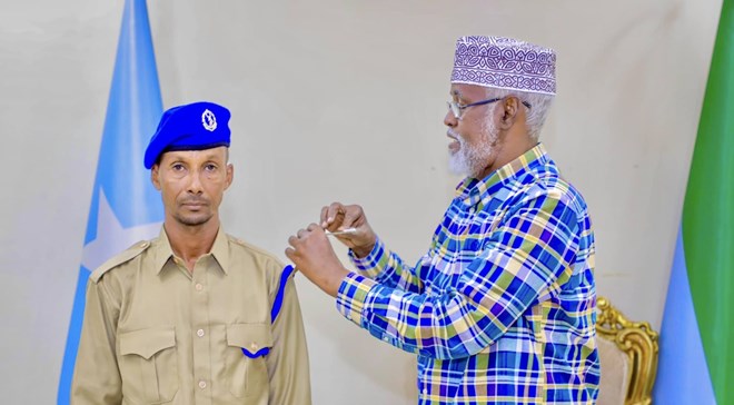 “Madaxweynaha Dowladda Jubbaland, Mudane Axmed Maxamed Islaam, ayaa Dhame Cabdixakiin Xasan Cartan (Jabuuti), Taliyaha Aagga Waqooyi ee magaalada Kismaayo ee Ciidanka Booliska Jubbaland, oo si geesinimo leh u diiday damaca guracan ee Xasan Sheekh Maxamuud uu dhaqaalaha ku kala furfurayay ciidamada Jubbaland, u dalacsiiyay darajada Gaashaanle,” ayaa lagu yiri qoraal kasoo baxay Madaxtooyada Jubbaland.