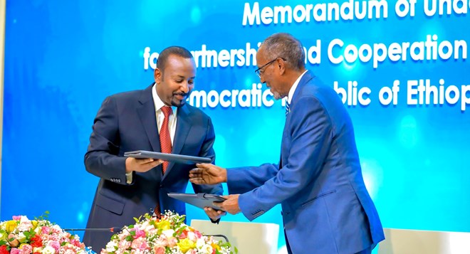 Isniin, January, 1, 2024 (HOL) - Raysal Wasaaraha Itoobiya iyo Madaxweynaha Somaliland oo isfaham heshiis iskaashi kala saxeexday, ayaa ku heshiiyay in Somaliland ay Itoobiya u ogolaato in saldhig ciidan laga siiyo badda Somaliland, Itoobiyana ay Somaliland aqoonsato.