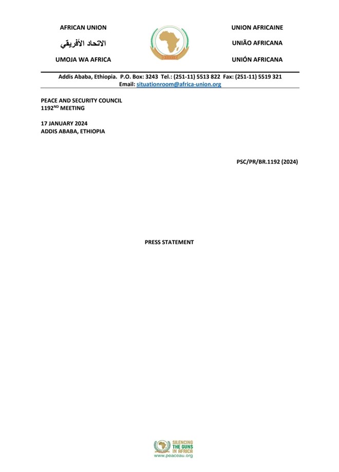 Arbaco, January, 17, 2024 (HOL) - Golaha Nabadda iyo Ammaanka ee Midowga Afrika, ayaa ugu baaqay dowladaha Itoobiya iyo Soomaaliya inay is-xakameeyaan, is-dejiyaan oo ay wada-hadal macno leh ka yeeshaan xiisadaha dhexdooda ka taagan.