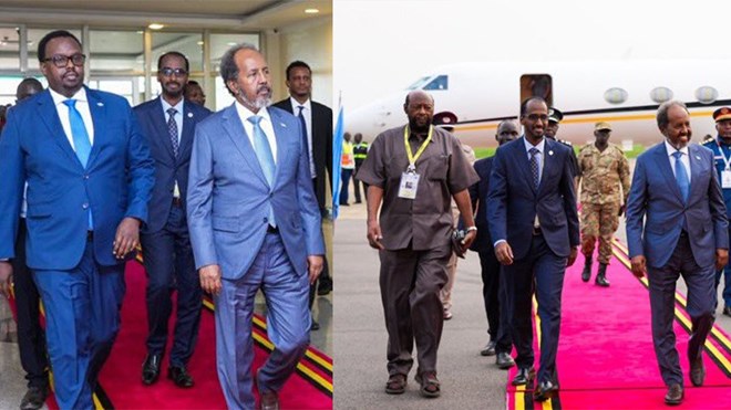 Khamiis, January, 18, 2024 (HOL) - Madaxweynaha dowladda Fedaraalka Soomaaliya Xasan Sheekh Maxamuud iyo wafdi uu hoggaaminaayo ayaa gaaray magaalada Kampala ee dalka Uganda.