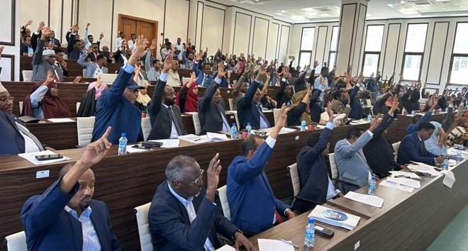 newsinside180 Xildhibaan oo ka kooban labada aqal ayaa cod gacan taag ah ku meel mariyay wax ka beddelka dastuurka, waxaana diiday 30 xildhibaan, sida uu sheegay guddoonka golaha.