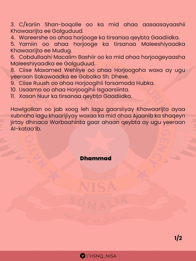 Hoos ka akhriso magacyada xubnaha Al-shabaab looga dilay duqeynta ee la shaaciyay:-