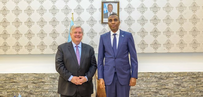 Arbaco, Juun, 26, 2024 (HOL) - Raysal Wasaaraha Xukuumadda Federaalka Soomaaliya Xamse Cabdi Barre ayaa maanta kulan la qaatay Danjiraha cusub ee dowladda Mareykanka u fadhiya Soomaaliya Richard H. Riley oo ay ka wada hadleen arrimo dhowr ah oo quseeya labada dowladood.