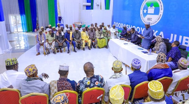 Axad, October, 17, 2024 (HOL) - Guddiga Doorashooyinka Jubaland ayaa maanta kulan la yeeshay Odayaasha Dhaqanka beelaha Jubaland, kuwaas oo door ku leh soo xulista Xildhibaannada ku matali doona Baarlamaanka Dowladda goboleedka Jubaland.