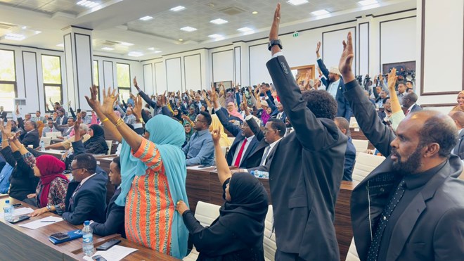 Sabti, November, 2, 2024 (HOL) - Xildhibaannada labada Aqal ayaa si aqlabiyad leh u ansixiyay codsiga Madaxweynaha ee ahaa in muddo bil ah dib loo dhigo fasaxa Baarlamaanka, si muddadaas lagu ansixiyo shuruucdii dalka ku hoggaamin laheyd doorasho qof iyo cod ah.
