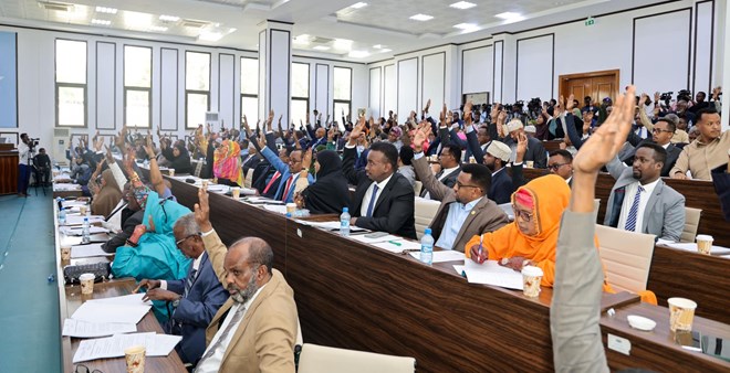 Sabti, November, 23, 2024 (HOL) - Xildhibaanada Labada aqal ee Baarlamaanka Soomaaliya ayaa ansixiyay hindise sharciyeedka xeerka Doorashooyinka dalka oo maanta ay marsiiyeen Akhrintiisi 3aad waxaana warbixintii ugu dambeeyay ee xeerkan uu maray mudanayaasha ka hor akhriyay Mahdi Guuleed oo ah Gudoomiyaha Guddiga Ku meel gaarka ah ee labada Aqal ee Baarlamaanka dalka.