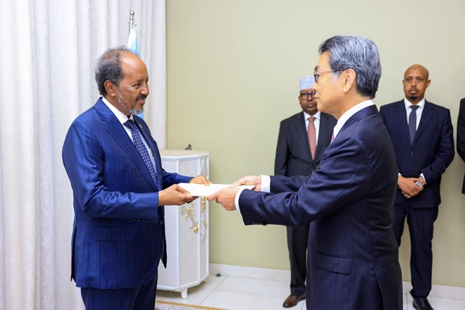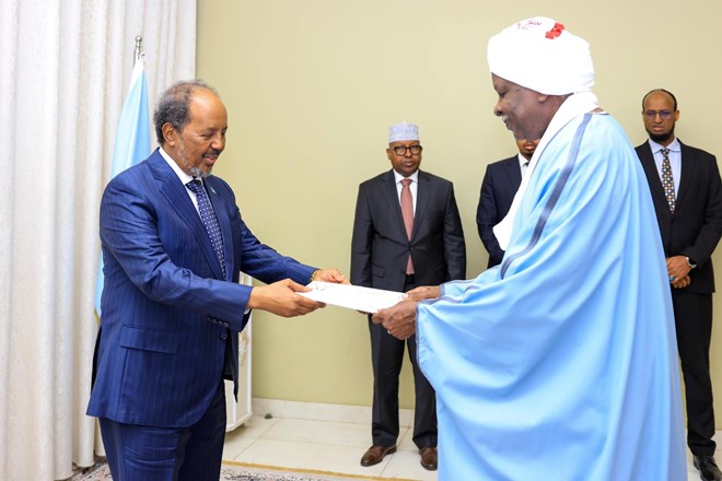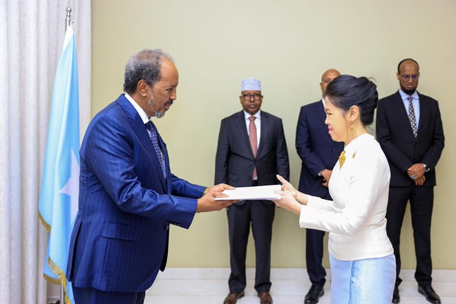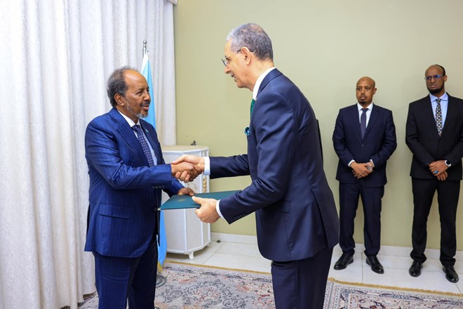 Madaxweyne Xasan Sheekh Maxamuud ayaa u sheegay Safiiraddaan muhiimada ay leedahay xoojinta xiriirka laba geesoodka ah ee Soomaaliya la leedahay dalalka ay ka socdaan, isagoona faray in la adkeeyo iskaashiga diblomaasiyadda, dhaqaalaha, horumarka iyo amniga.