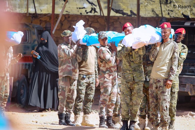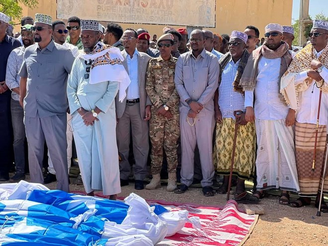 Axad, January 5, 2025 (HOL) - Waxaa maanta magaalada Baledweyne ee xarunta gobolka Hiiraan aas Qaran loogu sameeyay 6 askari oo ka mid ahaa ciidanka xoogga dalka oo dhawaan kooxo hubeysan qabiil ahaan ugu dileen deegaanka Ceel baraf ee gobolka Shabeellaha Dhexe.