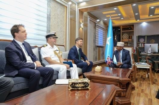 Arbaco, Luulyo 16, 2025 - Wasiirka Wasaaradda Gaashaandhigga ee Xukuumadda Federaalka Soomaaliya Axmed Macallin Fiqi ayaa maanta xafiiskiisa magaalada Muqdisho ku qaabilay Danjire Charles Nicholas King oo ah safiirka cusub ee dalka Ingiriiska u fadhiya Soomaaliya.