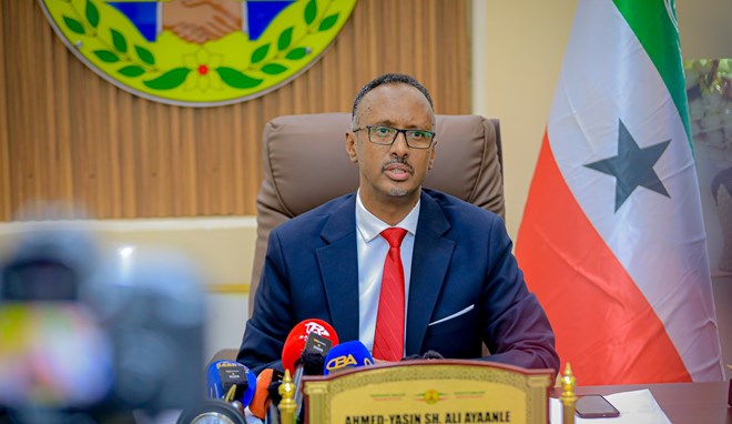 newsinside"Waxaanu ku waaninaynaa oo aanu ugu baaqaynaa in uu faraha kala baxo waxa aan loo diran loona dooran ee uu faraha kula jiro. Somaliland xuduudeeda iyadaa iska leh," ayuu Wasiir Ayaanle hadalkiisa sii raaciyay.