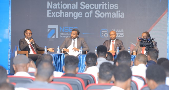 Sabti, Juun 21, 2025 (HOL) - Waxaa Magaalada Muqdisho Markii ugu horeysay laga daahfuray Suuqa Saamiyada Soomaaliyeed oo ay ka soo qaybgaleen, Madaxda iyo Masuuliinta Suuqa Saamiyada, Guddoomiyaha Rugta ganacstada Soomaaliya Maxamuud Cabdikariin Gabayre, Wasiir ku xigeenka wasaaradda Tamarta & Kheyraadka Biyaha XFS. Mohamed C/lahi Faarah, Xildhibaano ka tirsan dawladda Fadeeraalka Soomaaliya, Agaasimaha SOMINVEST Mohamed Dubo, shirkadaha isgaarsiinta dalka, iyo Midowga Bangiyada Soomaaliya.