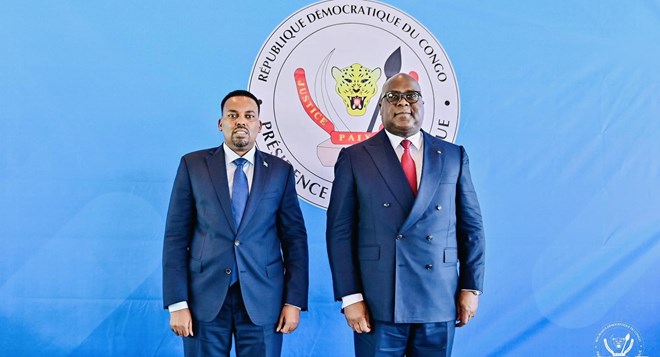 Talaado, November 11, 2025 (HOL) - Safiirka Soomaaliya ee Jamhuuriyadda Dimuqraadiga ah ee Congo (DRC), Ilyas Cali Xasan, ayaa si rasmi ah ugu wareejiyay waraaqihiisa aqoonsiga Madaxweynaha DRC, Félix Antoine Tshisekedi Tshilombo, munaasabad lagu qabtay Qasriga Qaranka ee magaalada Kinshasa.