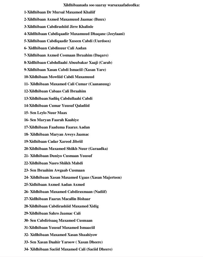 Ugu dambeyn, xildhibaannadu waxay ugu baaqeen Dowladda Federaalka iyo Dowlad Goboleedyada kale in lagu xalliyo khilaafaadka taagan si wadahadal ah, loona midoobo dagaalka ka dhanka ah kooxaha argagixisada.