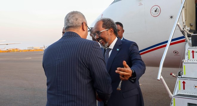 Arbaco, October 29, 2025 (HOL) - Madaxweynaha Soomaaliya, Xasan Sheekh Maxamuud, iyo wafdi uu hoggaaminayo ayaa lagu soo dhaweeyay magaalada Jabuuti ee caasimadda dalka Jabuuti, halkaas oo uu kaga qeybgalayo munaasabad lagu xusayo 25-sano guuradii ka soo wareegtay Shirweynihii Dib-u-heshiisiinta Soomaalida ee lagu qabtay magaalada Carta sanadkii 2000.